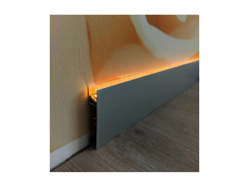 Отзывы о товаре Напольный алюминиевый плинтус с LED подсветкой АПН 80*15 LED анод «Серебро» 2,2 м